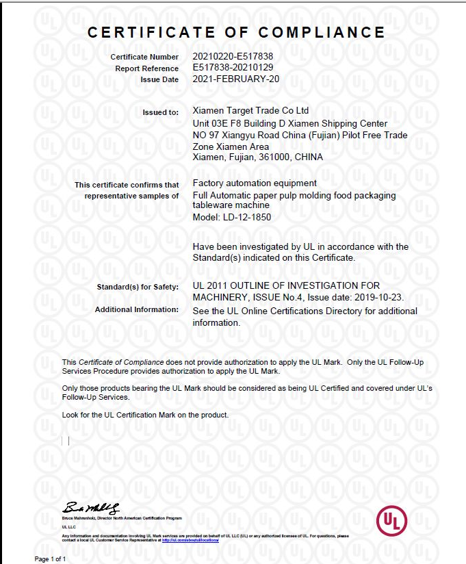 远东LD-12-1850免费修剪,免费打孔,全自动植物纤维餐具机通过认证UL认证.